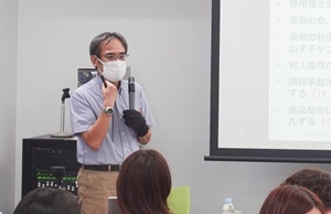 また、ミスの背景にある要因や発生の仕組みを体系的に整理して対策する「4STEP/M法」が紹介され、講義の終盤ではその手法を活用して殺虫剤誤飲事故の対策を検討するグループワークが行われました。